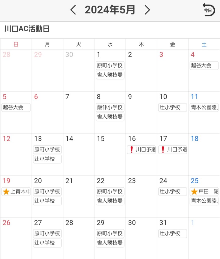 5月は特別練習会や違う場所での練習会があります。スケジュールを確認の上参加してください。