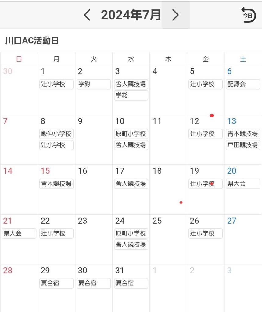川口AC7月練習予定表です。
