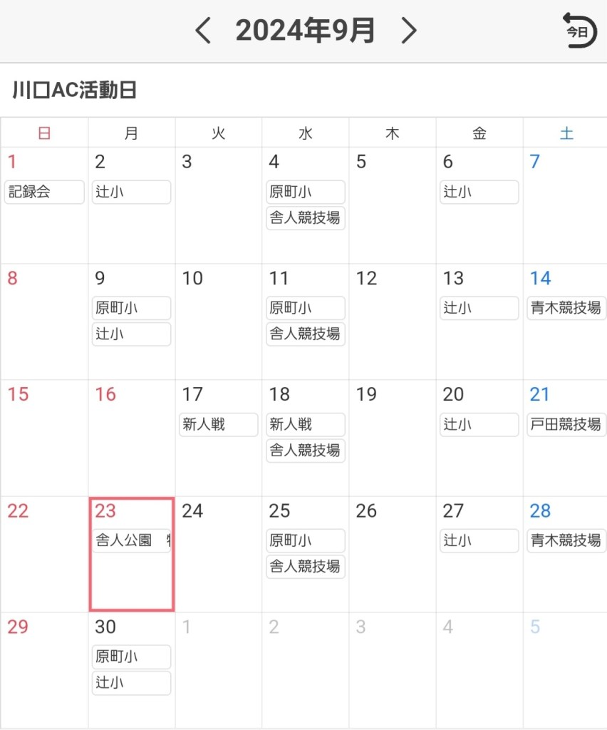 9月の練習日程になります。