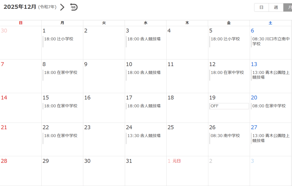 12月の活動予定になります。いよいよ年末になりました。